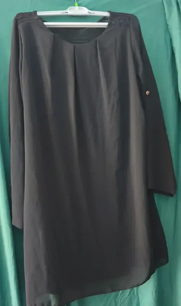 Tunique noir élégante avec détail en dentelle sur les épaules et le haut du dos. Manches longues avec bouton Coupe fluide et confortable, idéal pour un look chic et décontracté.